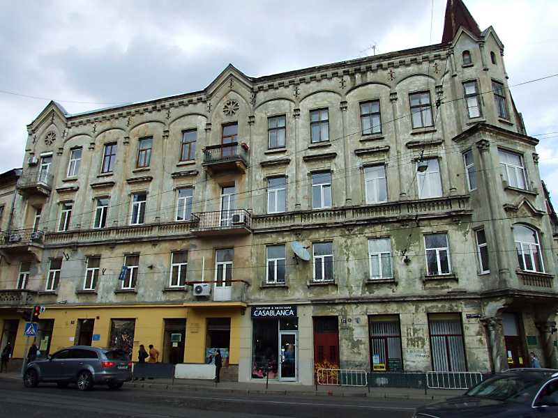 2012 р. Фасад по вул. І. ФранкаРозмір зображення: 800:600 піксел 4 квітня 2012 р. Фото М.І.Жарких. Ліворуч – будинок № 15, праворуч – № 17. |