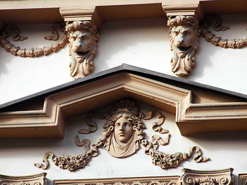 Рельєф над вікнами 2-го поверху Розмір зображення: 800:600 піксел Фото М.І.Жарких, 4 жовтня 2019 р. Вище | Наступна сторінка