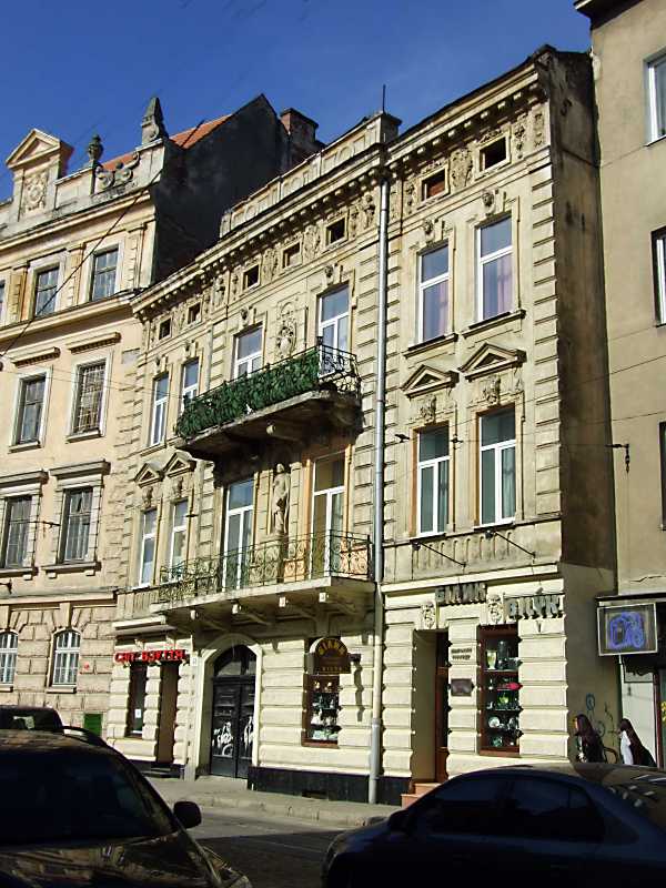 2013 р. Загальний вигляд Розмір зображення: 600:800 піксел 16 квітня 2013 р. Фото М.І.Жарких. Вкладені елементи Фрагмент фасаду 3-го поверху Скульптура А. Міцкевича
