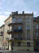 Житловий будинок (№ 32)Розмір зображення: 593:800 піксел Фото М.І.Жарких, 4 жовтня 2019 р. Ліворуч – вул. І. Франка, праворуч – вул. Саксаганського. Дім перебудували на поч. 20 ст., додавши 4-й поверх та сецесійне оздоблення. |