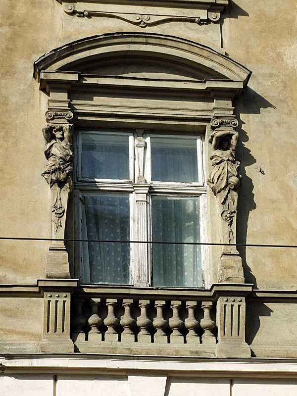 Вікно 2-го поверху Розмір зображення: 600:800 піксел Фото М.І.Жарких, 4 жовтня 2019 р. Вкладені елементи Ліва скульптурна консоль
