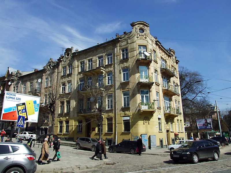 2013 р. Загальний виглядРозмір зображення: 800:600 піксел Ліворуч – вулиця Менделеєва, праворуч – вулиця І. Франка. 16 квітня 2013 р. Фото М.І.Жарких. |