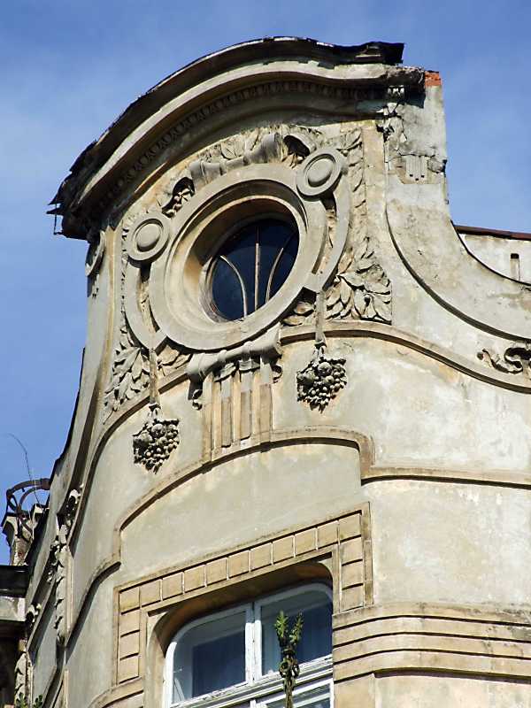 Сецесійний наріжний фронтон Розмір зображення: 600:800 піксел 16 квітня 2013 р. Фото М.І.Жарких. Вище | Наступна сторінка