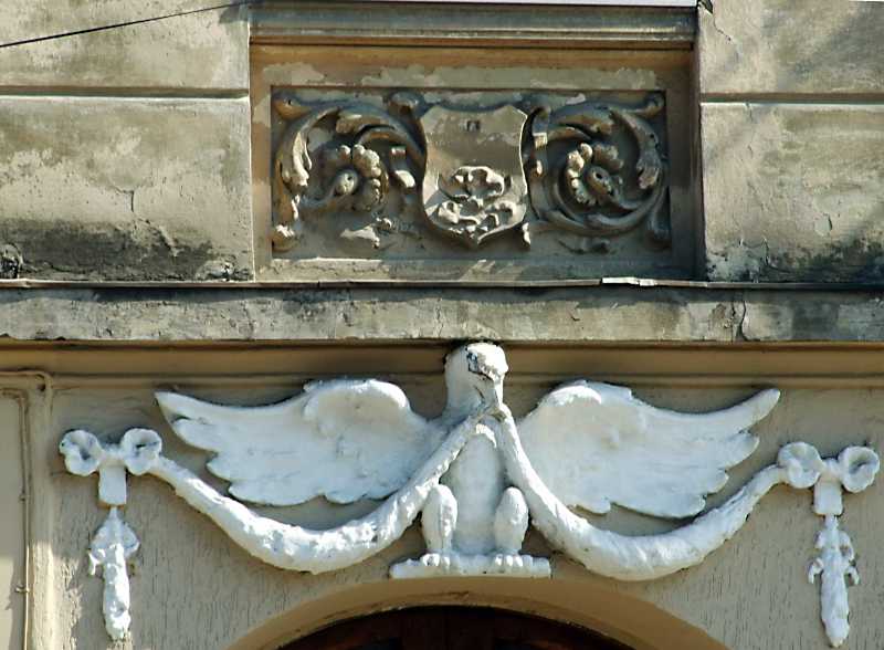 Рельєфні прикраси над входом Розмір зображення: 800:588 піксел 19 квітня 2013 р. Фото М.І.Жарких. Попередня сторінка | Вище | Наступна сторінка