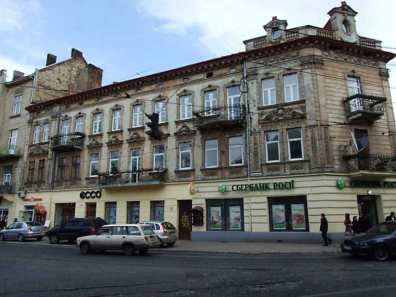 2012 р. Фасад по вул. І. Франка Розмір зображення: 800:600 піксел 4 квітня 2012 р. Фото М.І.Жарких. Вкладені елементи Вікна 2-го поверху
