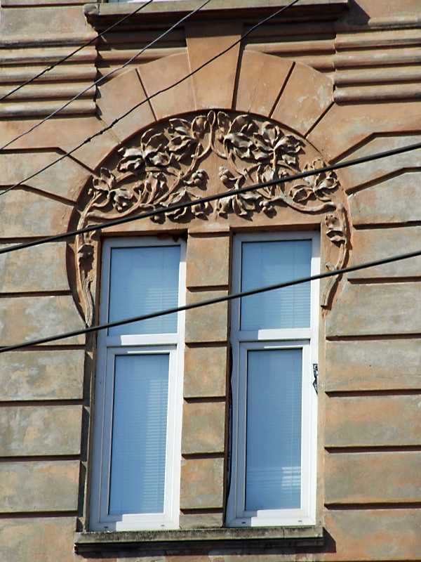 2013 р. Сецесійне вікно 3-го поверху Розмір зображення: 600:800 піксел 16 квітня 2013 р. Фото М.І.Жарких. Вище | Наступна сторінка