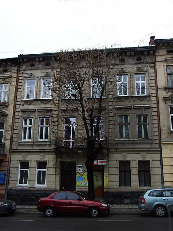 Житловий будинок (№ 12) Розмір зображення: 600:800 піксел 7 квітня 2012 р. Фото М.І.Жарких. Вкладені елементи 2013 р. Головний фасад (+)