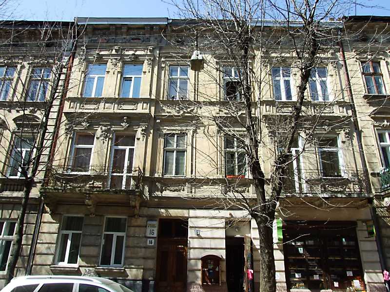 2013 р. Головний фасад Розмір зображення: 800:600 піксел 19 квітня 2013 р. Фото М.І.Жарких. Вкладені елементи Вікно 3-го поверху Балкон 2-го поверху