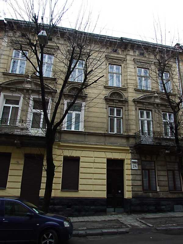Житловий будинок (№ 24) Розмір зображення: 600:800 піксел 7 квітня 2012 р. Фото М.І.Жарких. Вкладені елементи 2013 р. Головний фасад (+)