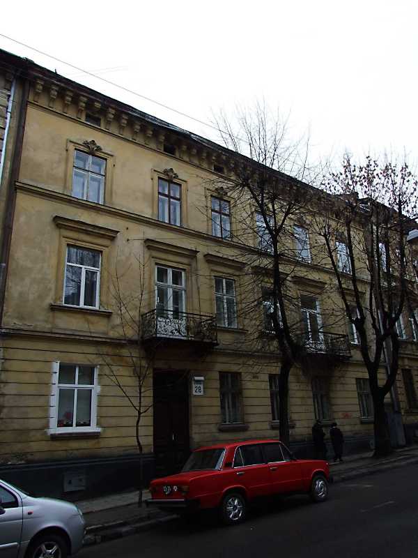 Житловий будинок (№ 28) Розмір зображення: 600:800 піксел Вкладені елементи 2012 р. Загальний вигляд Вітраж сходової клітки 2013 р. Головний фасад
