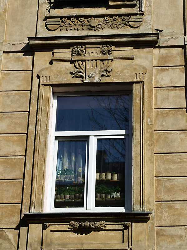 Сецесійне вікно 2-го поверху Розмір зображення: 600:800 піксел 18 квітня 2013 р. Фото М.І.Жарких. Попередня сторінка | Вище | Наступна сторінка