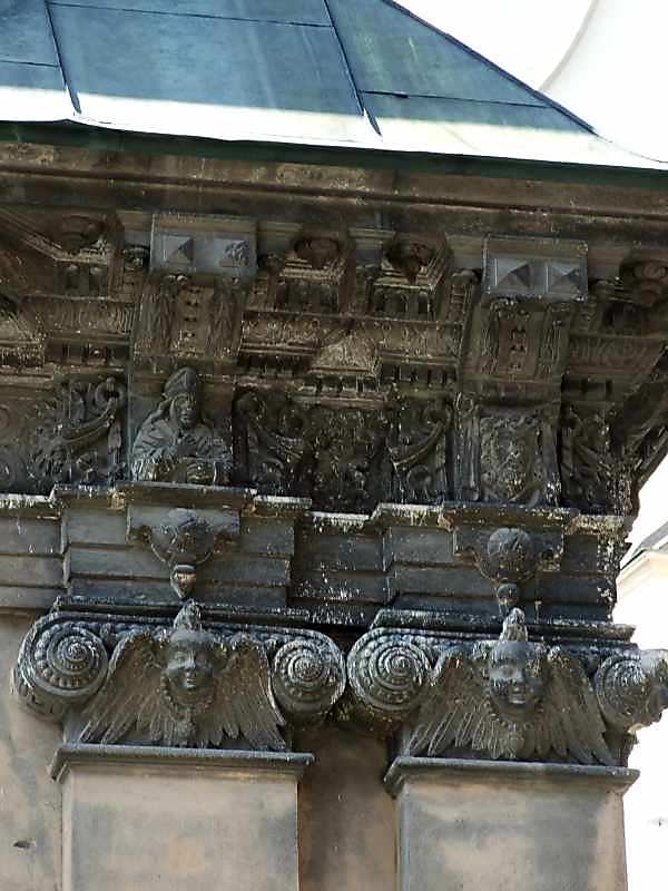 Капітелі наріжних пілястр Розмір зображення: 600:800 піксел 14 вересня 2007 р. Фото М.І.Жарких. Попередня сторінка | Вище | Наступна сторінка