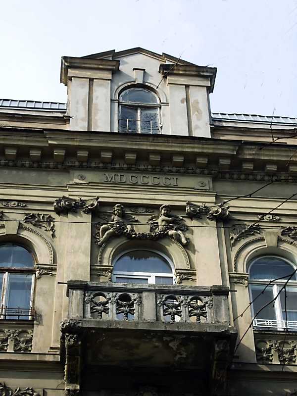 Балкон 4-го поверху і фронтон Розмір зображення: 600:800 піксел 4 квітня 2012 р. Фото М.І.Жарких. Вище | Наступна сторінка