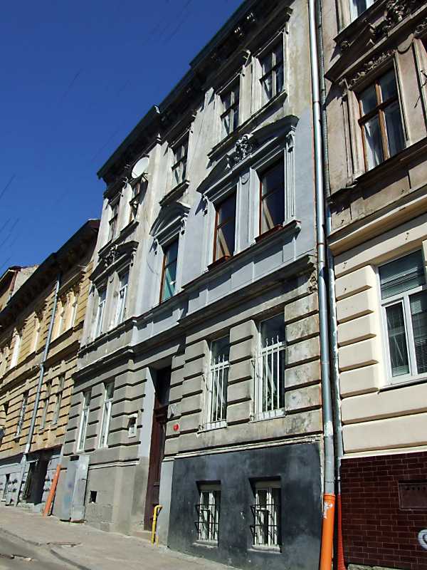 Житловий будинок (№ 12) Розмір зображення: 600:800 піксел 16 квітня 2013 р. Фото М.І.Жарких. Вкладені елементи 2013 р. Фрагмент головного фасаду (+)