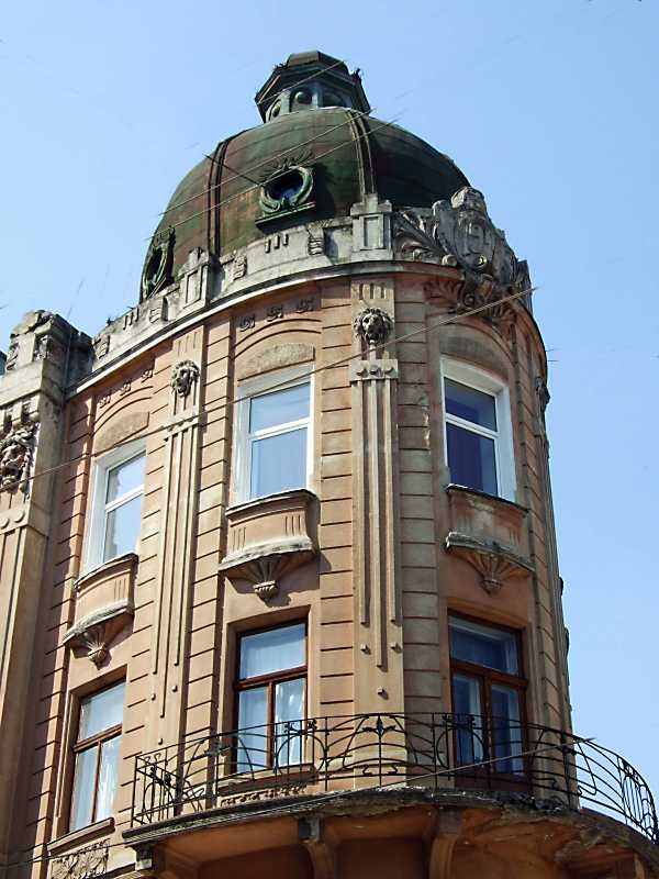 Наріжний об’єм Розмір зображення: 600:800 піксел 19 квітня 2013 р. Фото М.І.Жарких. Вкладені елементи Сецесійна пілястра з маскароном