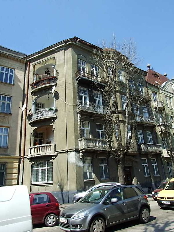 Житловий будинок (№ 6) Розмір зображення: 600:800 піксел 19 квітня 2013 р. Фото М.І.Жарких. Вкладені елементи 2013 р. Сецесійна рельєфна вставка 2013 р. Сецесійний вхід (+)