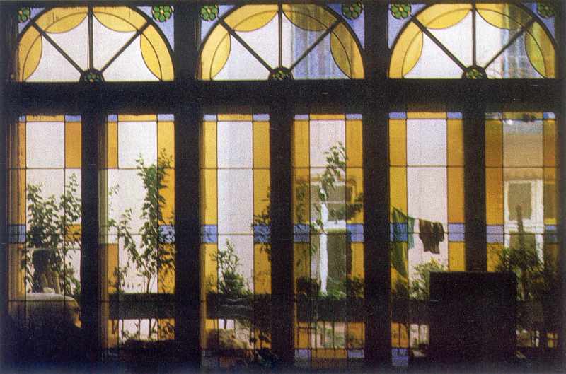 Загальний виглядРозмір зображення: 800:529 піксел Ширма-вікно в помешканні (вул. М.Коперника, 12). Джерело: Грималюк Р. Вітражі Львова кінця XIX – початку XX століття. – Льв.: 2004 р., с. 119. |