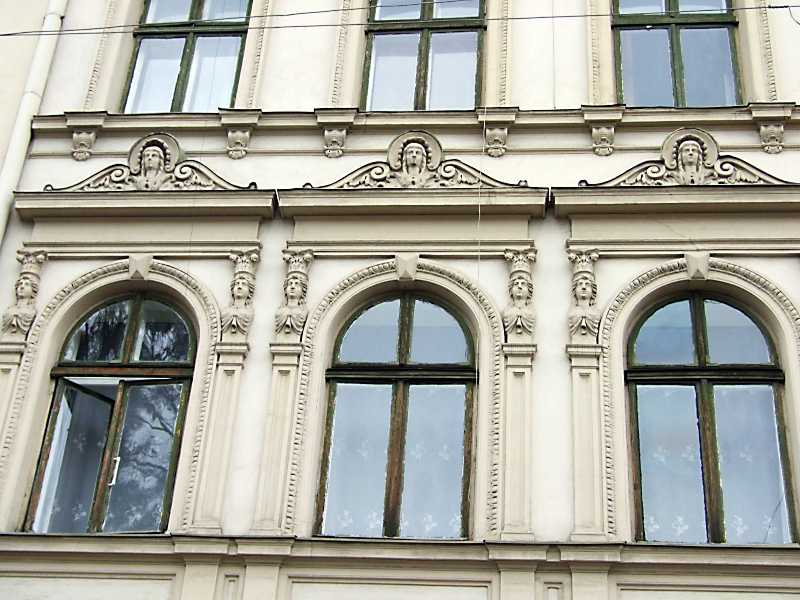 2012 р. Вікна 2-го поверху Розмір зображення: 800:600 піксел 7 квітня 2012 р. Фото М.І.Жарких. Вкладені елементи Рельєфний фронтон
