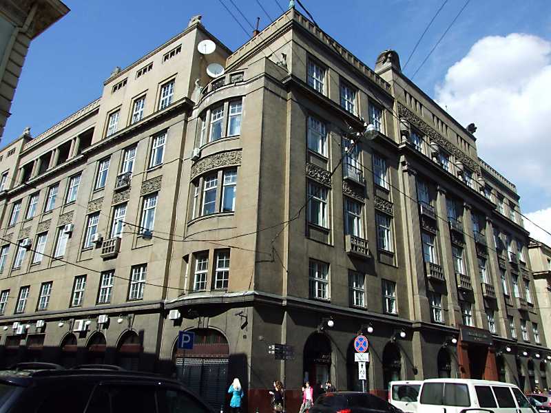 Будинок (вул.Коперніка, 4) споруджено в 1912 – 1914 рр. (архіт. А.Захаревич) у стилі класицизму для земської кредитної спілки. До 1939 р. тут знаходилось Кредитне товариство землевласників. Боки фронтону прикрашені скульптурами крилатого Меркурія (З.Курчинський). Зал засідань оздоблений живописним фризом З.Розвадовського “Плоди землі” (1913 – 1930 рр.).