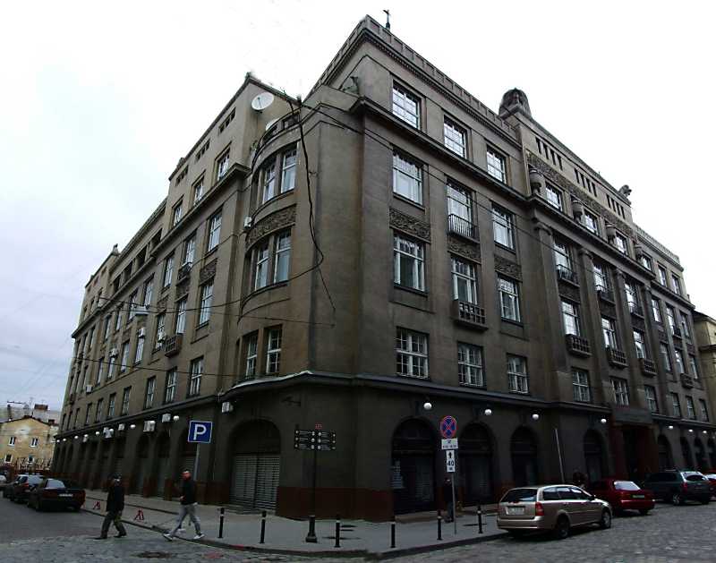 2012 р. Загальний виглядРозмір зображення: 800:629 піксел 8 квітня 2012 р. Фото М.І.Жарких. Ліворуч – вул. Банківська, праворуч – вул. Коперника. |