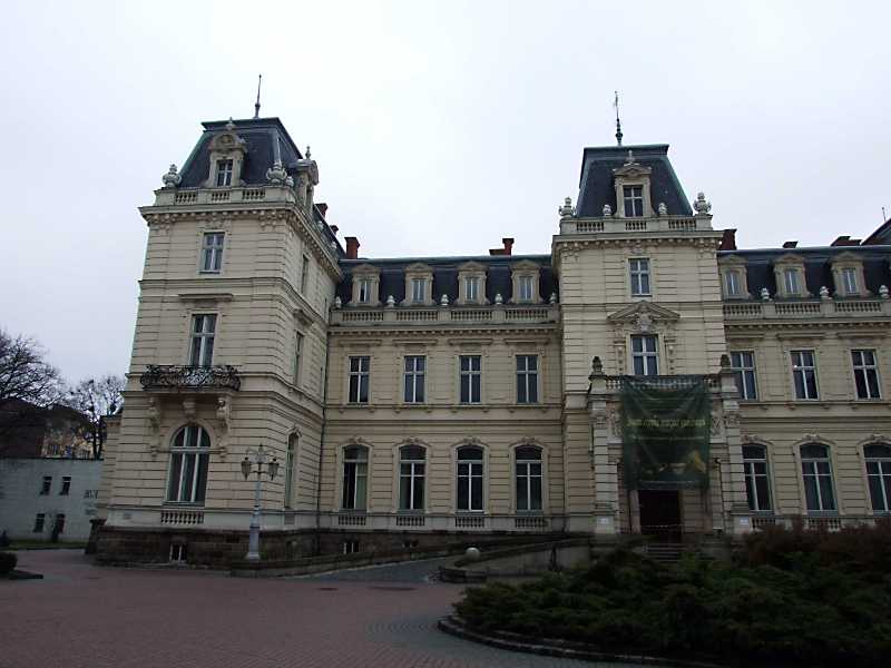 Ліва частина головного фасаду Розмір зображення: 800:600 піксел 7 квітня 2012 р. Фото М.І.Жарких. Вкладені елементи Лівий ризаліт (+) Вікно мансарди Вікно 2-го поверху центрального ризаліту Вікна 2-го поверху Ґанок Вікна 1-го поверху
