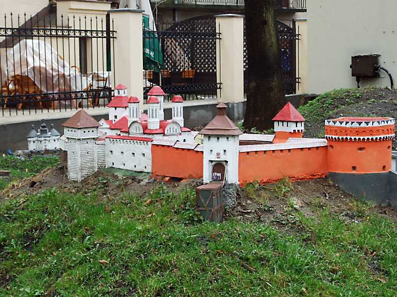 Загальний вигляд (2)Розмір зображення: 800:600 піксел Дерев’яної вежі (тієї, що на фото ліворуч) також в дісності не було. Не існувало також надбрамної вежі. 7 квітня 2012 р. Фото М.І.Жарких. |