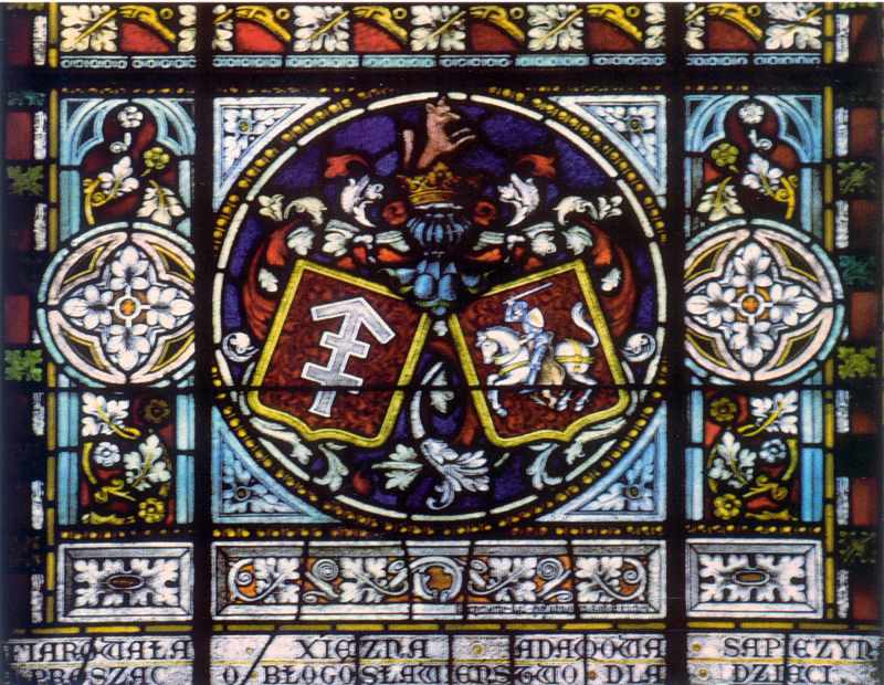 Нижня частинаРозмір зображення: 800:620 піксел Святий Михаїл. Фрагмент вітража. Костел францисканок. Джерело: Грималюк Р. Вітражі Львова кінця XIX – початку XX століття. – Льв.: 2004 р., с. 87. |