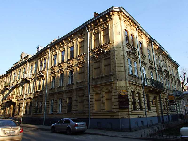 Житловий будинок (№ 15а)Розмір зображення: 800:600 піксел Ліворуч – вулиця Кониського, праворуч – вулиця К. Левицького. 16 квітня 2013 р. Фото М.І.Жарких. |