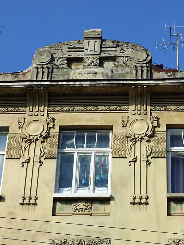 2013 р. Сецесійне вікно 4-го поверху Розмір зображення: 600:800 піксел 16 квітня 2013 р. Фото М.І.Жарких. Вище | Наступна сторінка