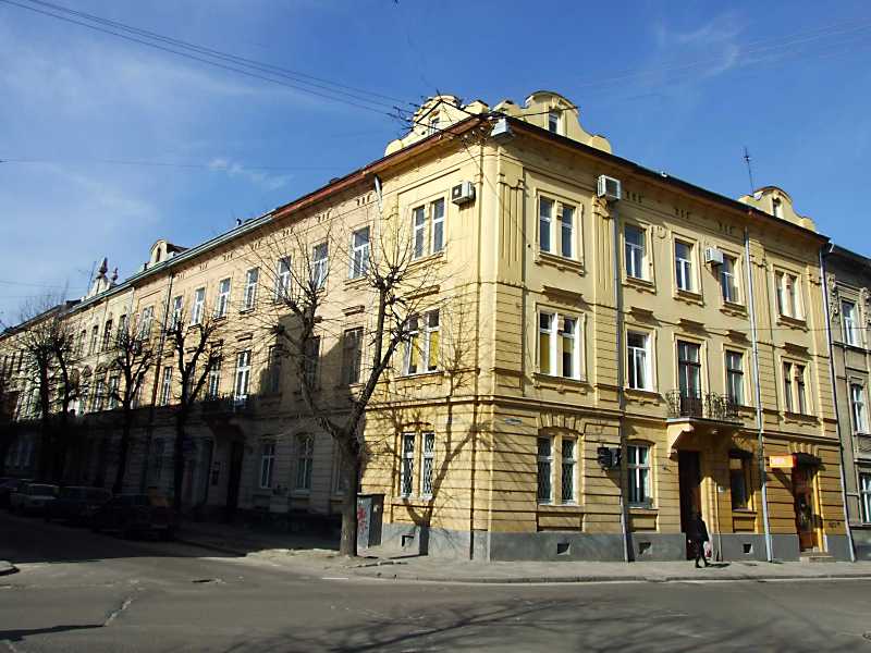 Житловий будинок (№ 44)Розмір зображення: 800:600 піксел Ліворуч – вулиця Дороша, праворуч – вулиця К. Левицького. 16 квітня 2013 р. Фото М.І.Жарких. |