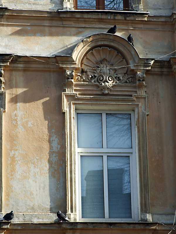 Вікно 2-го поверху Розмір зображення: 600:800 піксел 16 квітня 2013 р. Фото М.І.Жарких. Вкладені елементи Фронтон вікна 2-го поверху
