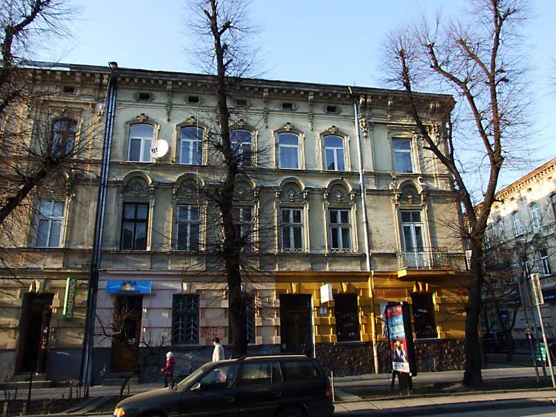 2013 р. Фасад по вул. К. Левицького Розмір зображення: 800:600 піксел 16 квітня 2013 р. Фото М.І.Жарких. Вкладені елементи Вікно 3-го поверху Вікно 2-го поверху
