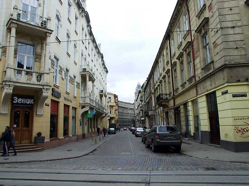2012 р. Перспектива від вул. П. Дорошенка в бік вул. Січових стрільцівРозмір зображення: 800:600 піксел 8 квітня 2012 р. Фото М.І.Жарких. |
