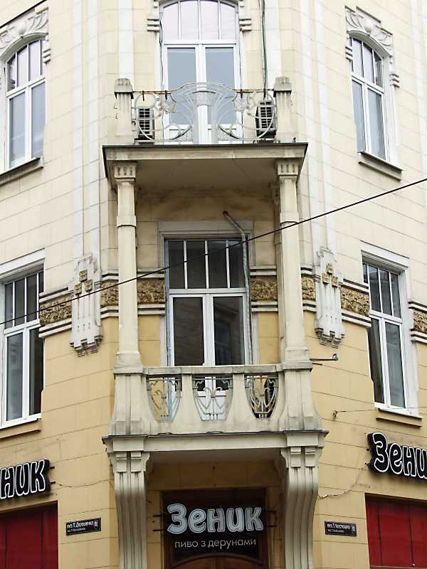 Наріжний балкон 2-го поверху Розмір зображення: 600:800 піксел 8 квітня 2012 р. Фото М.І.Жарких. Вище | Наступна сторінка