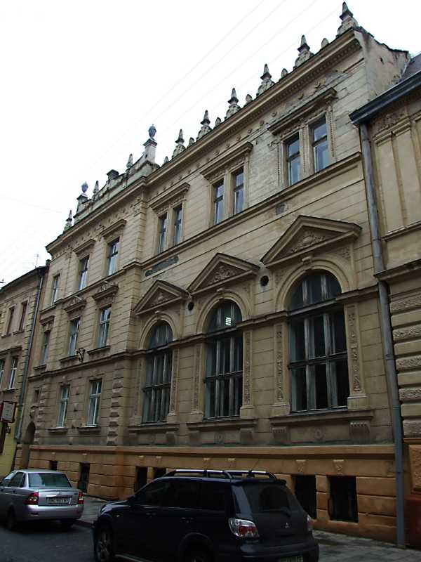Будинок (№ 9) Розмір зображення: 600:800 піксел 7 квітня 2012 р. Фото М.І.Жарких. Вкладені елементи 2013 р. Загальний вигляд 2012 р. Вікно 2-го поверху 2013 р. Вікно 2-го поверху (+) 2013 р. Рельєф чаші у фронтоні вікна 2-го поверху 2012 р. Маскарон лева над входом 2013 р. Маскарон лева над входом