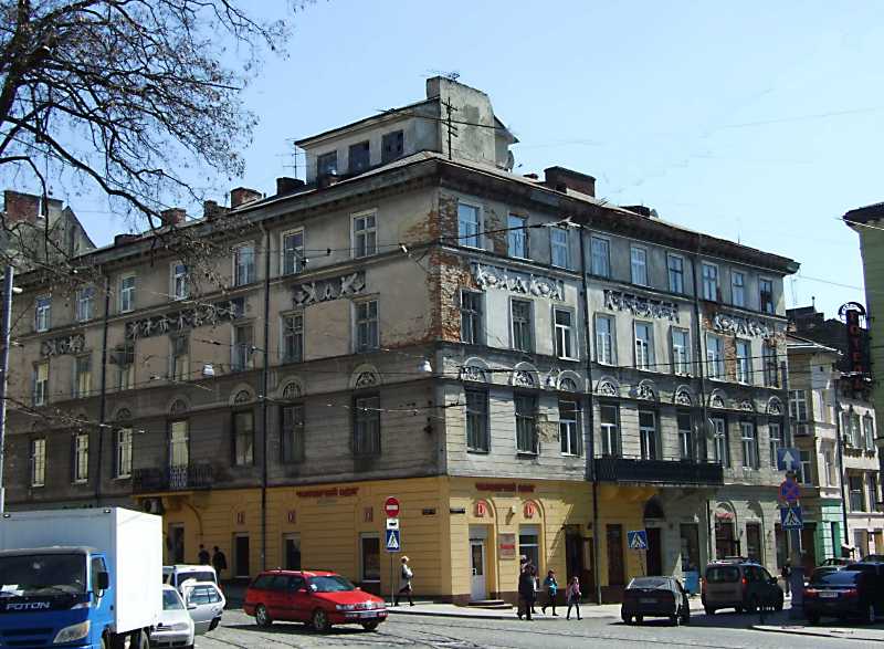 2013 р. Загальний виглядРозмір зображення: 800:587 піксел Ліворуч – вулиця Гонти, праворуч – вулиця Краківська. 18 квітня 2013 р. Фото М.І.Жарких. |
