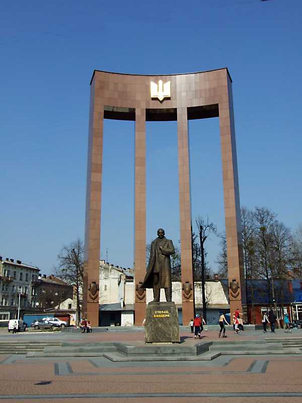2013 р. Загальний вигляд з позиції С3 Розмір зображення: 600:800 піксел 19 квітня 2013 р. Фото М.І.Жарких. Вкладені елементи Постать С. Бандери на постаменті (+) Барельєф «Княжа доба» Барельєф «Козаччина» Барельєф «УНР» Барельєф «Україна»