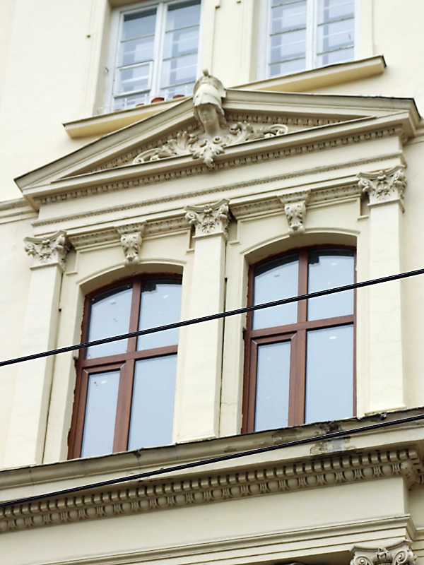 2012 р. Вікна 3-го поверху Розмір зображення: 600:800 піксел 7 квітня 2012 р. Фото М.І.Жарких. Вкладені елементи Тимпан