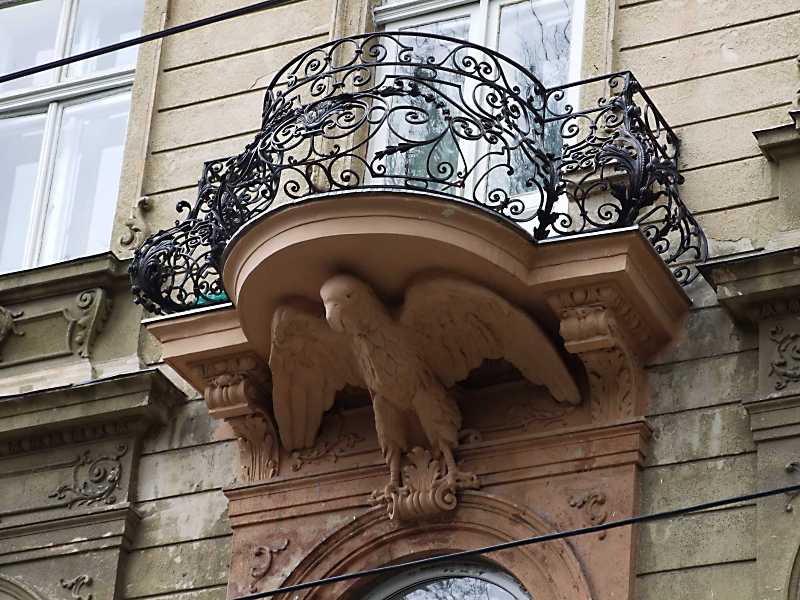 2012 р. Балкон 3-го поверху з польським орломРозмір зображення: 800:600 піксел 7 квітня 2012 р. Фото М.І.Жарких. |