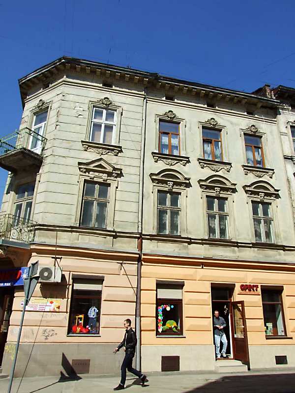 2013 р. Фасад по вул. Медовій Розмір зображення: 600:800 піксел 18 квітня 2013 р. Фото М.І.Жарких. Вкладені елементи Вікно 3-го поверху Вікно 2-го поверху
