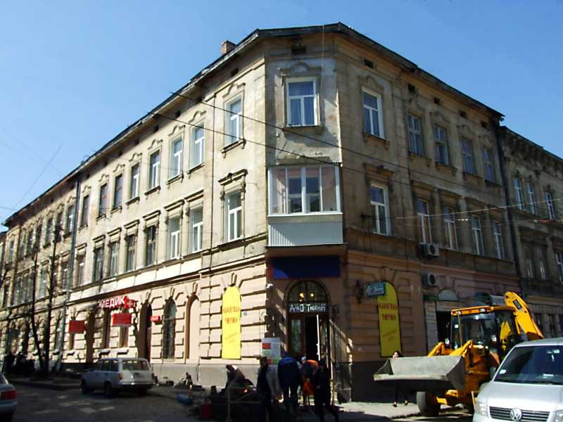 Житловий будинок (№ 25)Розмір зображення: 800:600 піксел Ліворуч – пасаж Германів, праворуч – вулиця Куліша. 18 квітня 2013 р. Фото М.І.Жарких. |