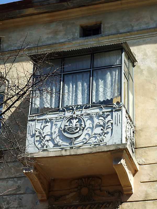 2013 р. Сецесійний балкон 3-го поверху Розмір зображення: 600:800 піксел 18 квітня 2013 р. Фото М.І.Жарких. Вище | Наступна сторінка
