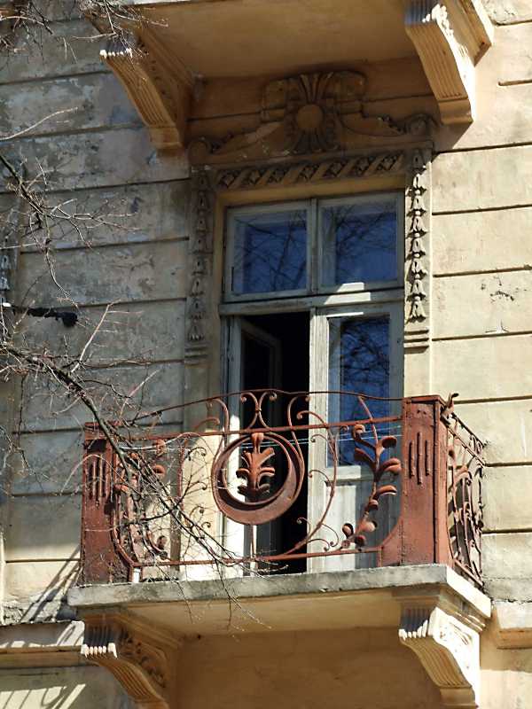 2013 р. Сецесійний балкон 2-го поверху Розмір зображення: 600:800 піксел 18 квітня 2013 р. Фото М.І.Жарких. Попередня сторінка | Вище | Наступна сторінка
