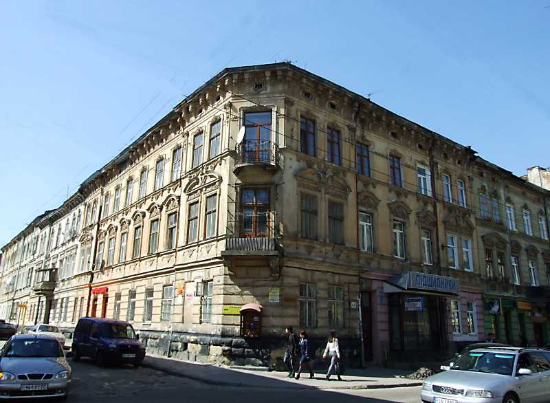 Житловий будинок (№ 41)Розмір зображення: 800:586 піксел Ліворуч – вулиця Газова, праворуч – вулиця Куліша. 18 квітня 2013 р. Фото М.І.Жарких. |