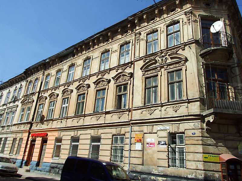 2013 р. Фасад про вул. Газовій Розмір зображення: 800:600 піксел 18 квітня 2013 р. Фото М.І.Жарких. Вкладені елементи Вікно 3-го поверху Вікна 2-го поверху (+)