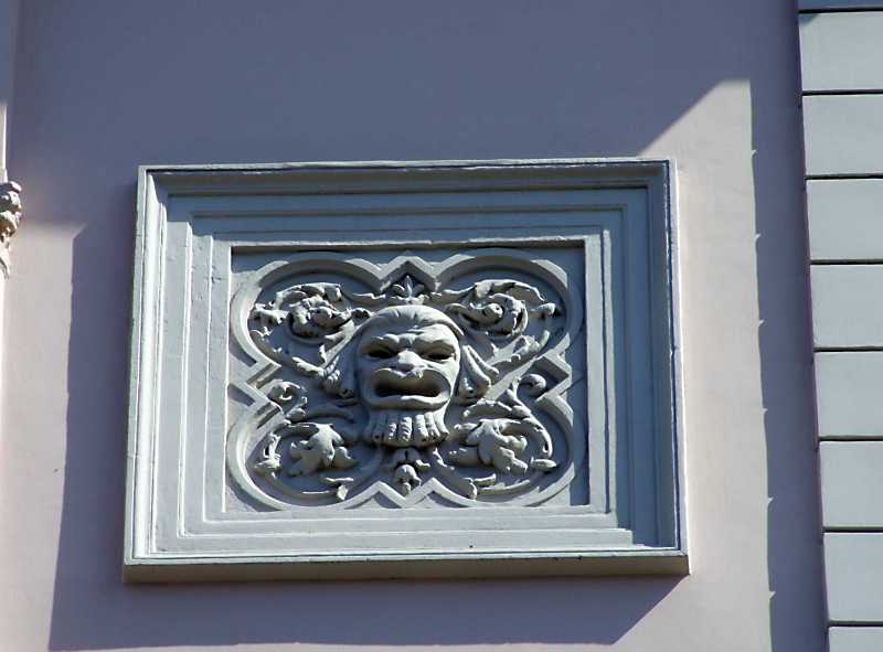 2013 р. Рельєфна вставка з маскароном Розмір зображення: 800:591 піксел 18 квітня 2013 р. Фото М.І.Жарких. Вище | Наступна сторінка