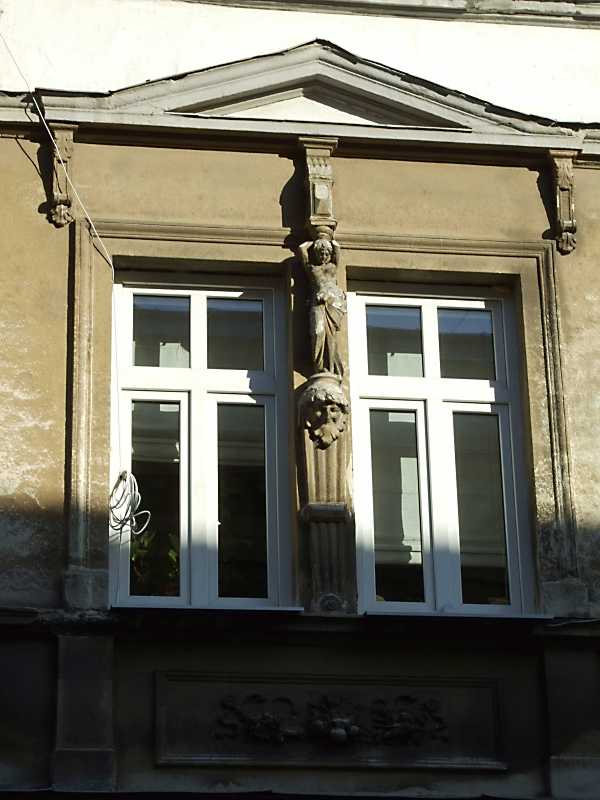 2013 р. Вікна 2-го поверху Розмір зображення: 600:800 піксел 18 квітня 2013 р. Фото М.І.Жарких. Вкладені елементи Каріатида та маскарон