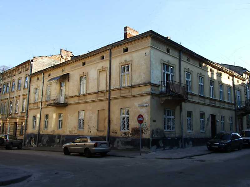 Житловий будинок (№ 23)Розмір зображення: 800:600 піксел Ліворуч – вулиця Кобилянської, праворуч – вулиця Кирила і Мефодія. 18 квітня 2013 р. Фото М.І.Жарких. |