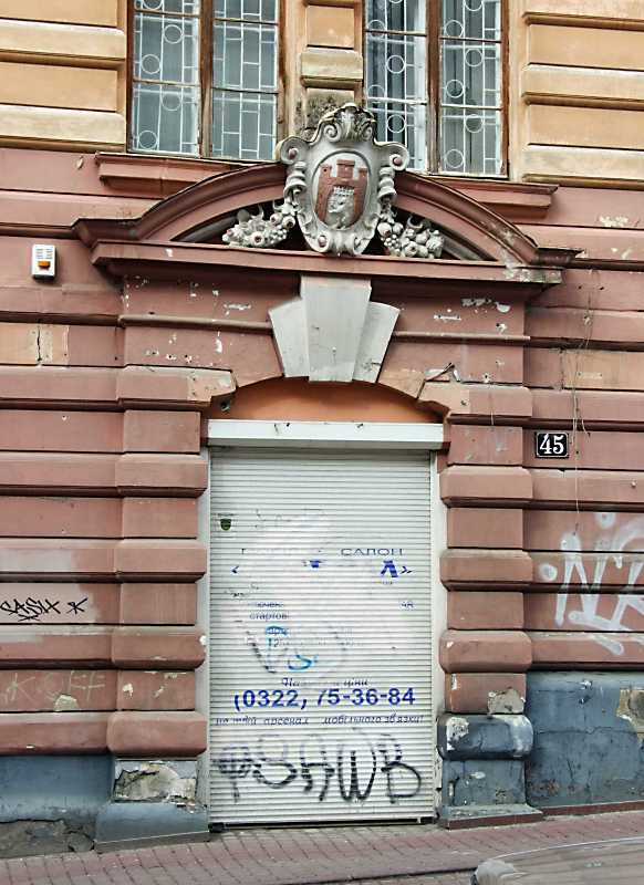 Портал Розмір зображення: 582:800 піксел 7 квітня 2012 р. Фото М.І.Жарких. Вкладені елементи Скульптурний картуш із гербом Львова
