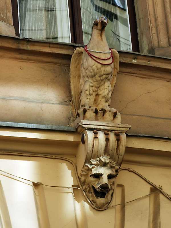 2013 р. Скульптура орла та маскарон лева Розмір зображення: 600:800 піксел 16 квітня 2013 р. Фото М.І.Жарких. Вище | Наступна сторінка